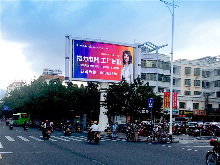该显示屏位于海南省昌江县城主要交通要道人民北路的南国超市旁,是昌江县城交通及商业中心地段,人流车流量极大,高峰期车滞留时间长,视觉效果极佳,具备极高的广告价值,是昌江县城投放广告,展示企业实力,宣传品牌价值的优质选择。